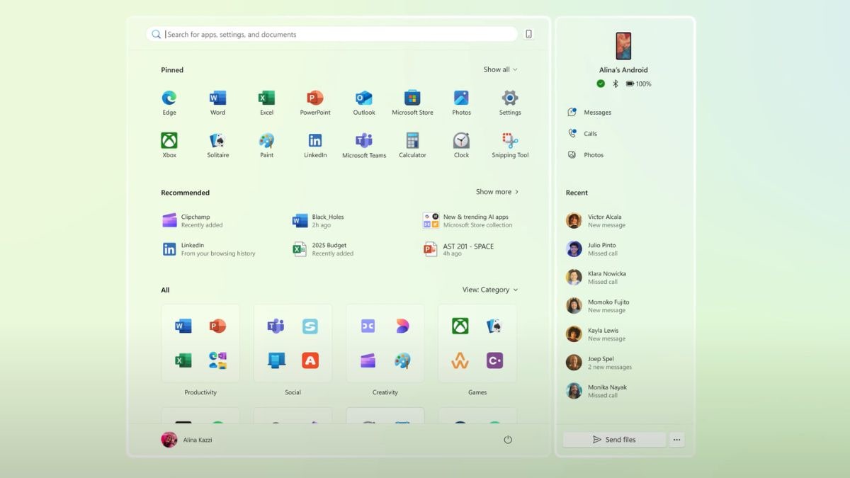 Home Computers Microsoft's Phone Link Panel Arrives on Start Menu With Support for Android...