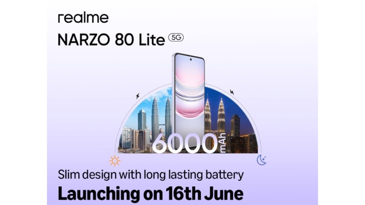 Realme Narzo 80 Lite 5G is set to be launched in India today (June 16). The handset is expected to be an entry-level offering and will join the Realme Narzo 80x and Narzo 80 Pro which debuted in the country in April. While exact specifications remain under wraps, the company has already teased several details about the upcoming handset, including its battery capacity, colour options, design, RAM and storage variants, and expected pricing.